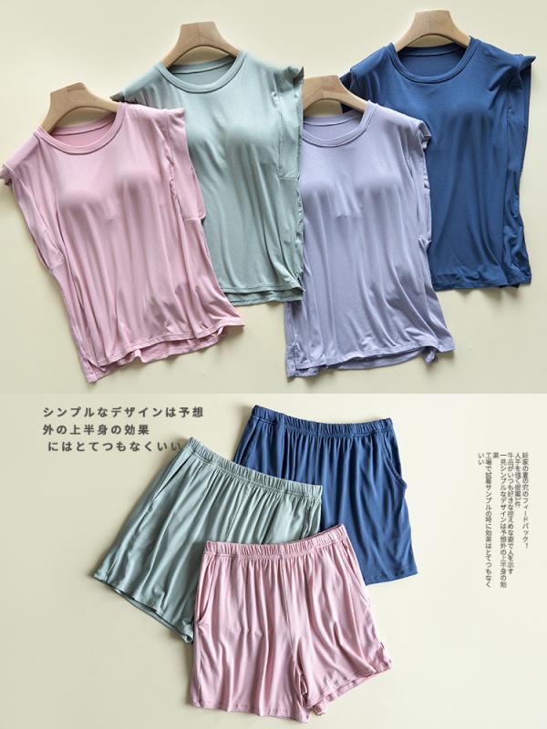 Tシャツ レディース 半袖 モダール 無地 ブラ 一体型 トップス ブラトップ セットアップ 部屋着 インナー 接触冷感 吸湿速乾