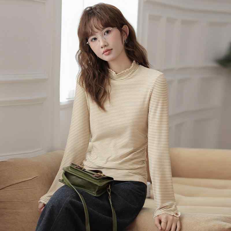 Tシャツ レディース 春夏 ストライプ柄 レース 半袖 カットソー スリム 薄手 トップス インナー 接触冷感 吸湿速乾 かわいい 韓国 カジュアル