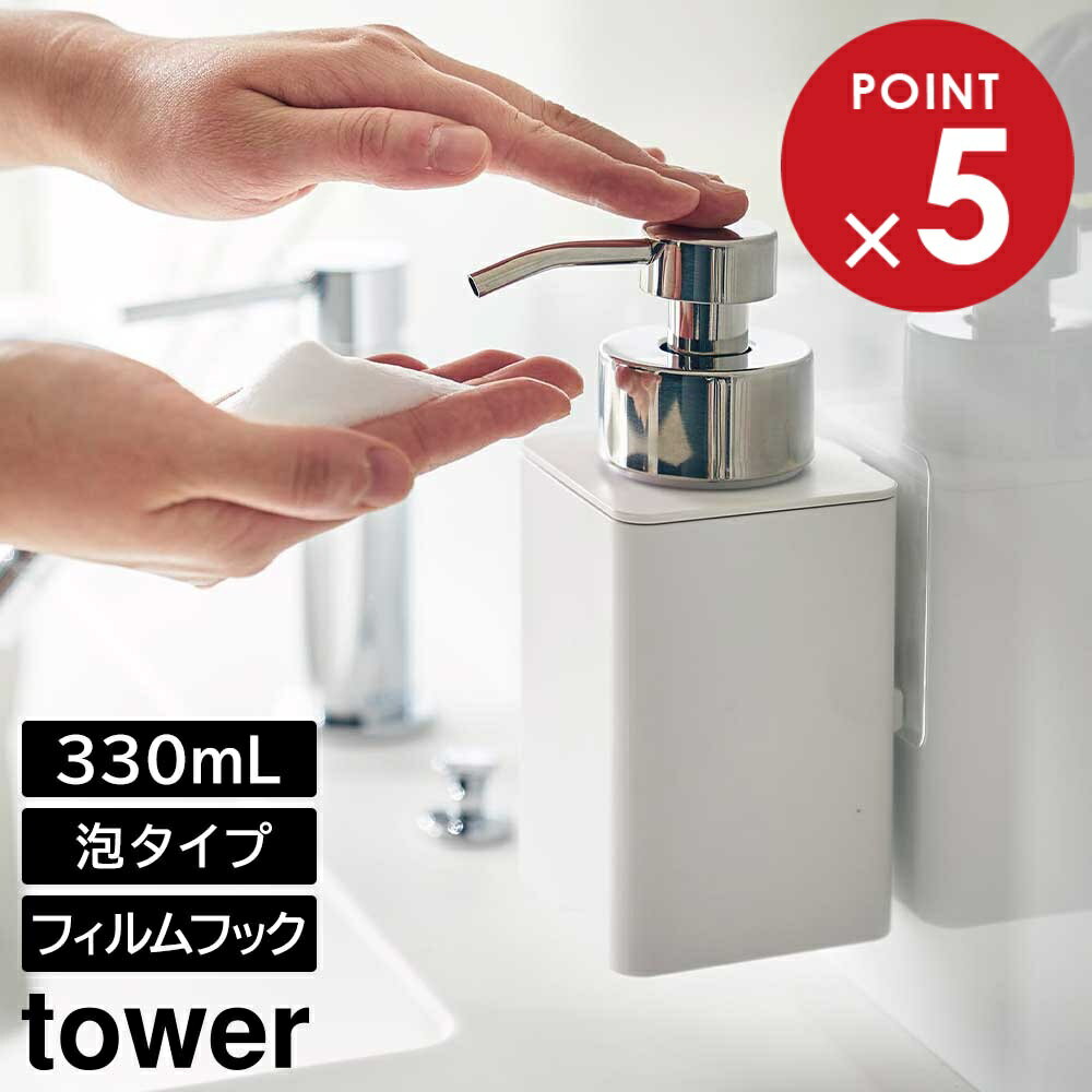 タワー 山崎実業 tower フィルムフックディスペンサー 泡タイプ 3683 3684YAMAZAKI 詰め替え用 壁面収納 浮かせる収納 ハンドソープ 液体ソープ 330ml 詰め替え簡単 分解可能 キッチンパネル 台所 洗面所◇洗面台 衛生的 簡単設置 スペース有効活用 省スペース P5倍