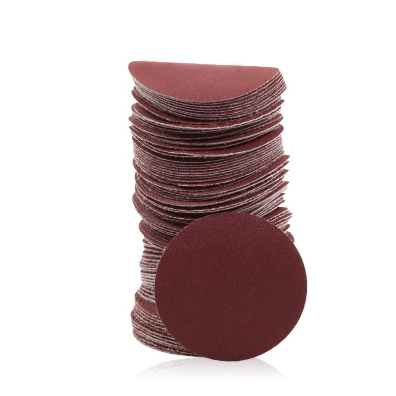 LEONTOOL サンドペーパー サンディングペーパー #120 100枚 50mm*50mm マジック式 丸型 赤 研磨用 木工用 表面処理 穴なし 紙やすり サンディングディスク 塗装剥がし 下地処理 仕上げ 木工 樹脂 プ
