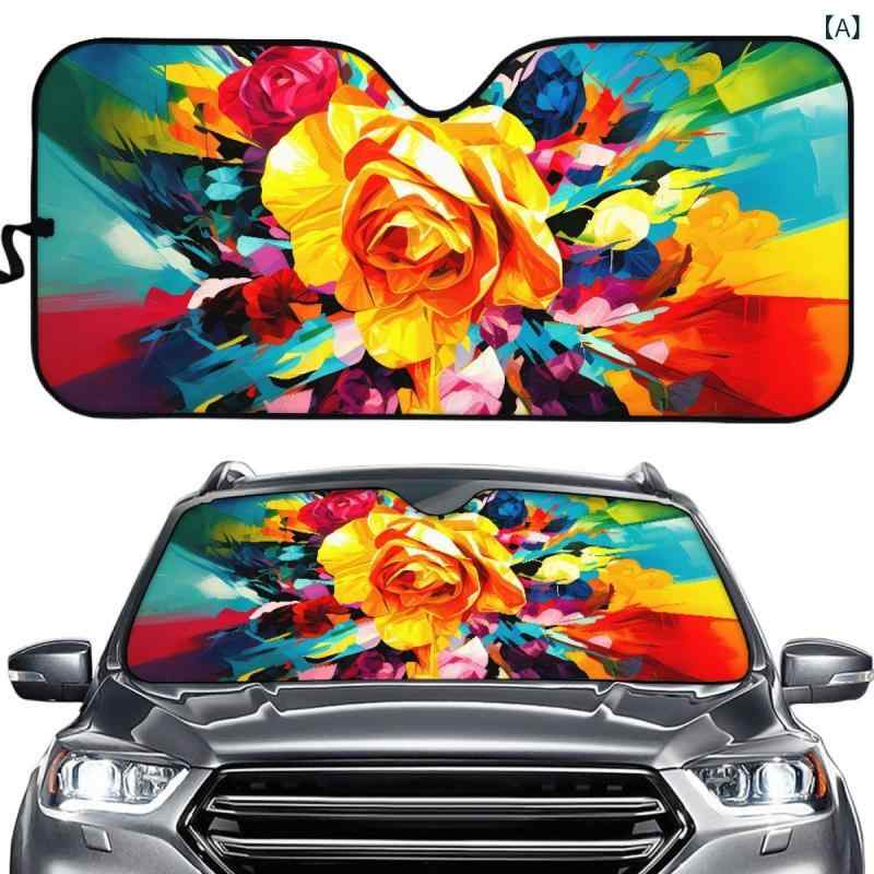 自動車用サンシェード 薔薇 ローズ 花柄 おしゃれ かわいい シンプルデザイン フロントガラス用 アルミシート 日よけ 遮光 紫外線対策 UVカット 暑さ対策 取り付け簡単 夏用 汎用 軽自動車 普通車 SUV