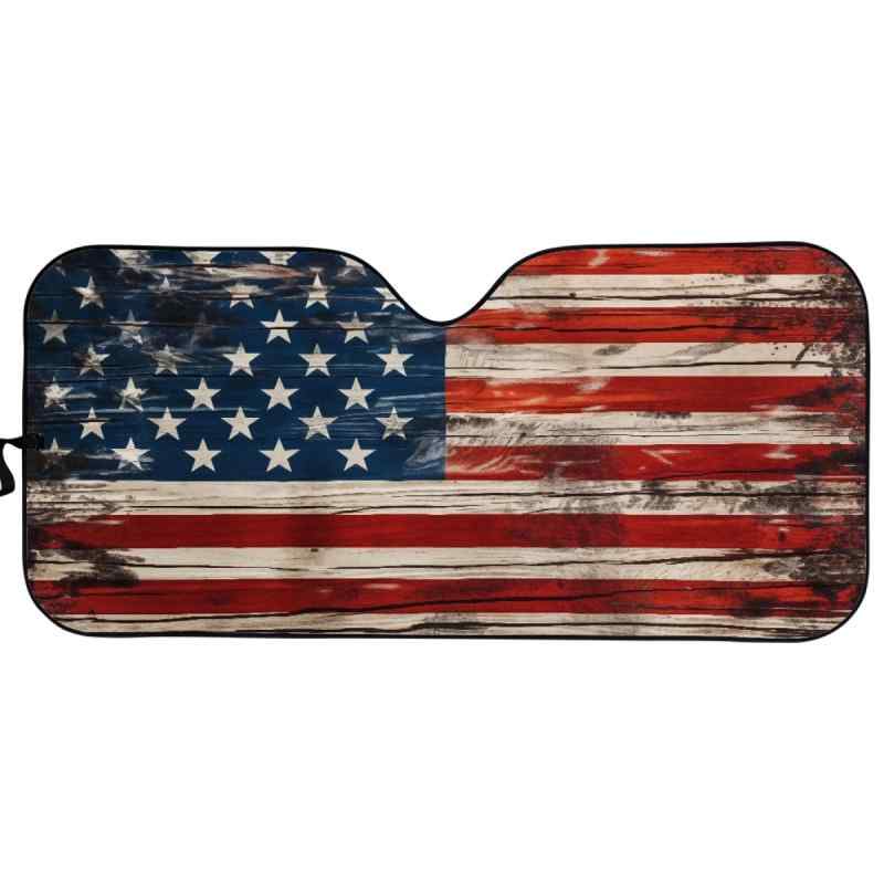 車用サンシェード フロントガラス 汎用 UVカット 紫外線対策 日よけ 遮光 断熱 軽量 コンパクト収納 アメリカ国旗柄 星条旗デザイン 車中泊 駐車時 暑さ対策 簡単装着 おしゃれ