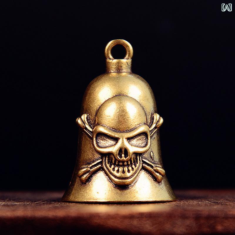 キーホルダー 男女兼用 スカル ドクロ 真鍮 鈴 ベル 車用 自動車用 キーリング チャーム ペンダント 吊り下げ アクセサリー ファッション小物 かっこいい 個性的 ユニーク 普段使い カジュアル エスニック風 レトロ ヴィンテージ調 銅製