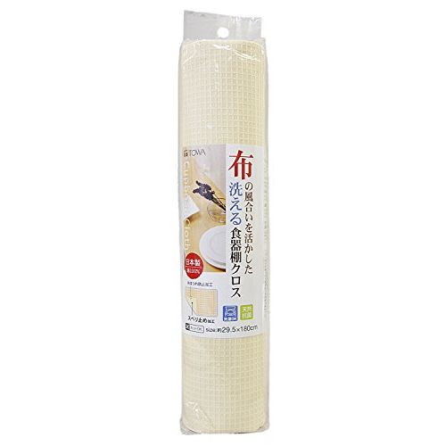 【商品詳細】本体サイズ:約29.5×180cm本体重量:約103g素材・材質:(本体)綿、(裏面)メタクリルブタジエンゴム原産国:日本●「CW食器棚クロスIV29.5×180cm」は、布の風合いを活かした洗える食器棚クロスです。●日本製です。●【使用方法】●敷く場所の汚れ・ホコリをきれいに取り除き、よく乾燥させてください。●敷く場所のサイズに合わせて、クロスをハサミ等でカットしてください。●※巻きぐせ等がつき、棚にスッキリ敷けない場合は、アイロン台の上で必ず表面からあて布をしてアイロンがけし、まっすぐに伸ばしてからご使用ください。【送料について】北海道、沖縄、離島は送料を頂きます。※パッケージデザイン等は予告なく変更されることがあります。