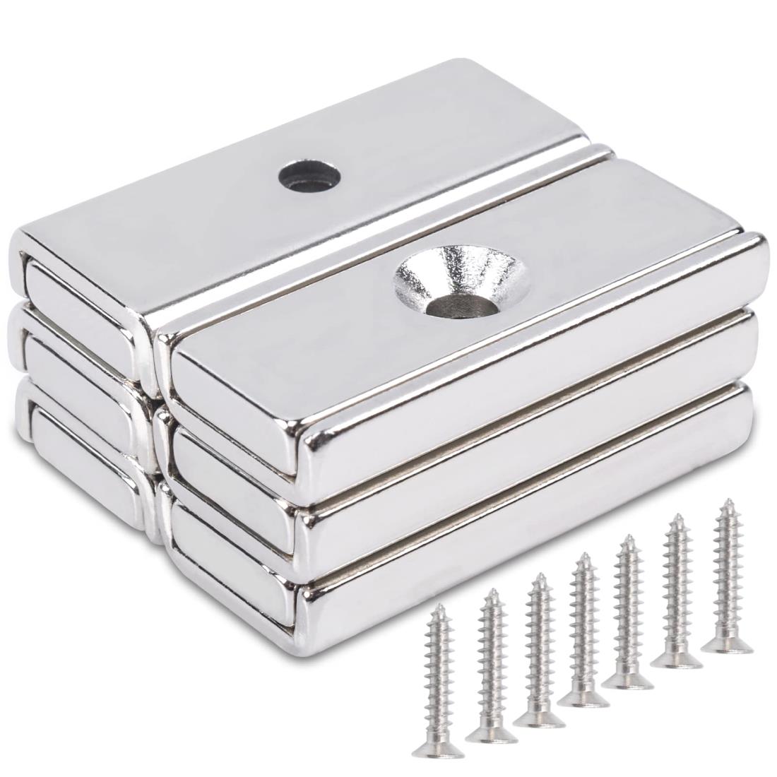 超強力マグネット 6個入 30x13.5x5mm 皿穴3.5mm 直方体磁石 小型 ネオジム磁石 ネジ付き 強力 バーマグネット 工業事務室 キッチン 浴室 倉庫 室外 壁掛け