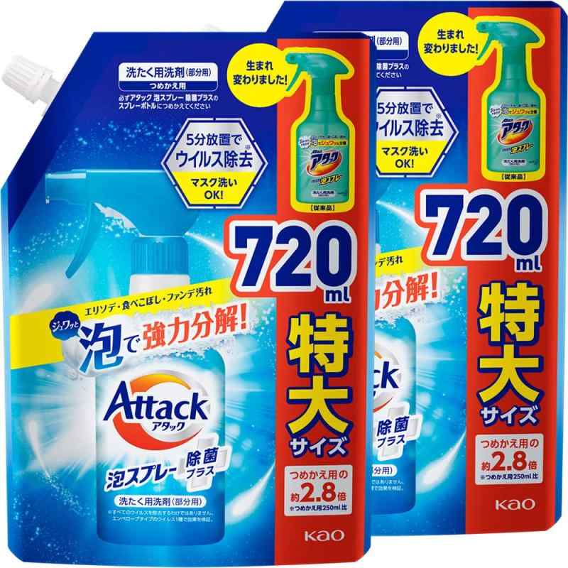 アタック 【まとめ買い】泡スプレー除菌プラス 詰替え720ml×2個 (衣料用洗浄スプレー)
