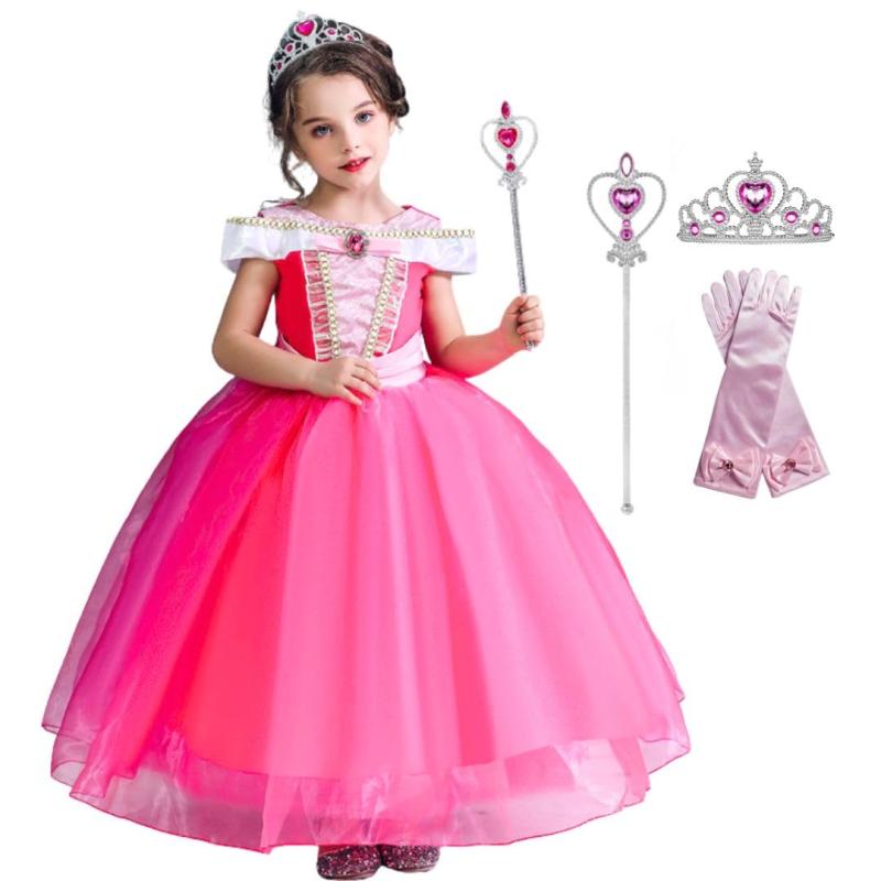 [MANAMANA] 子供ドレス プリンセスドレス プリンセス ドレス ティアラ スティック グローブ 4点セットキッズコスチューム ピンク 女の子 100 110 120 130 140 100cm 110cm 120cm 130cm 140cm
