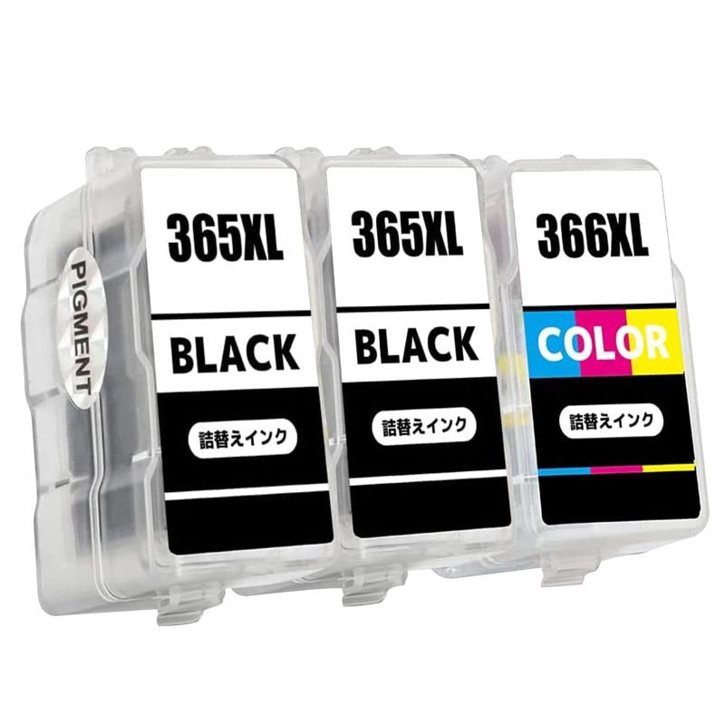 【BAALAND】キャノン BC-365XL(顔料ブラック) BC-366XL(染料カラー) 3個セット Canon用 詰め替えインクカートリッジ 大容量 bc-365 bc-366 対応機種 PIXUS TS3530 TS3730