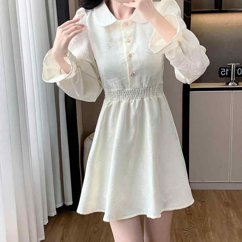 ・カテゴリ: ワンピース・スタイル: エレガント・素材: TR素材・主な素材構成: ポリエステル30%以下・ネックライン: ポロネック・袖丈: 七分丈・袖タイプ: パフスリーブ・スカート丈: ミドル丈・カラー展開: アプリコット・サイズ展開: S, M, L, XL, 2XL, 3XL