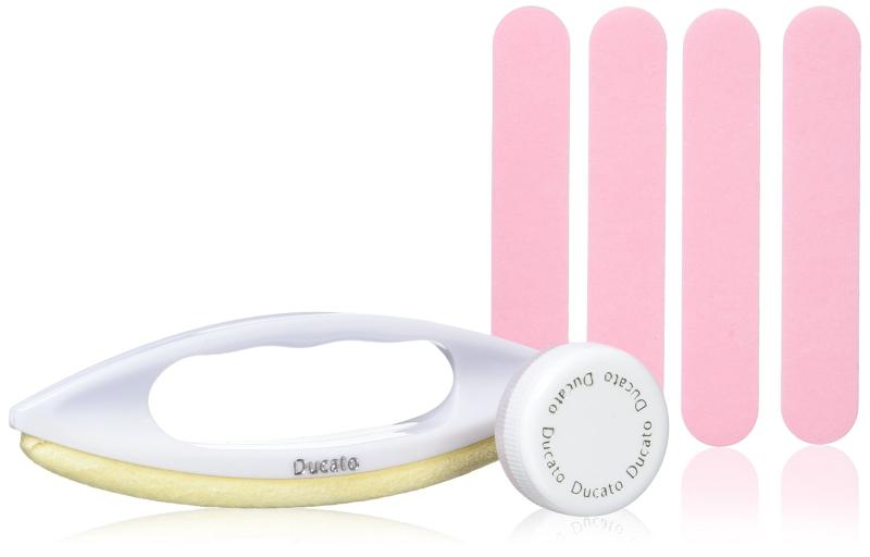 デュカート ツメミガキセットエナメルを塗らなくても、3STEPで自爪に自然なツヤを出します。バッファは握りやすさを追求して設計されたハンドルなので手元が安定します。研磨材配合のペーストにより、自然なツヤが得られます。原材料 : バッファ/動物皮革、ポリエチレン、PS、ネイルペーパー/セラミック研磨剤、洋紙、ポリエチレン、ペースト/ケイソウ土、グリセリン、赤色106号原産国:日本