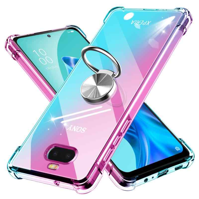 【Tgaoleyd】XPeria 8 ケース クリア リング付き 耐衝撃 グラデーション色 シリコン 軽量 薄型 スタンド機能 衝撃吸収 米軍MIL規格 SOV42 SO-02M カバー tpu ソフト レンズ保護 滑り止め 黄ばみ防止 指【対応機種】SONY XPeria 8 [SOV42 SO-02M] に対応なので、機種を間違いないようご注意下さい。【リング付き】後ろに付いているフィンガーリングはスタンド機能はもちろん、滑りにくくて持ちやすい、安定的なグリップが特徴です。リングはケースにしっかり固定されていて、縦置き、横置きどんな角度でも固定できます。360度回転可能、180角度調節可能。【ファッションの外観】透明度が高く、携帯電話本体の美しさを完璧に見せる、ポケットに入れてもかさばらない薄さ。また、カバー内側に加工されているマイクロドットがスマホ本体の熱を効率的に放出でき、密着痕(滲み)の発生を防げます。【独立ボタン&操作簡単】カバーは独立ボタンの様式で、ボタンの取り付けや取り外しが簡単です。精密なデザインで、装着状態でもコネクターや音量調節ボタン、電源ボタンなどにピッタリ合って、カバーを装着したままで各機能が簡単に操作できます。【商品】購入日から30日間に、品質があります。製品に不具合が生じた場合は、メールでご連絡してください弊社。お客様からのお問い合わせ内容に応じて代替品交換や返金可能です。