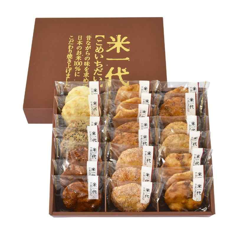 丸彦製菓 米一代 22枚原材料:[みそ]うるち米(国内産100%)、ごま、しょうゆ(小麦・大豆を含む)、砂糖、みそ、みりん、はちみつ、水飴、でん粉、こんぶ調味エキス、しょうが、唐辛子/加工デンプン、カラメル色素、調味料(アミノ酸等)、香辛料抽出物<br>[白ゴマ]うるち米(国内産100%)、白ごま(ごまを含む)、しょうゆ(小麦・大豆を含む)、みりん、砂糖、でん粉、こんぶ調味エキス/調味料(アミノ酸等)、カラメル色素、香辛料抽出物<br>[しょうゆ]うるち米(国内産100%)、しょうゆ(小麦・大豆を含む)、みりん、砂糖、でん粉、こんぶ調味エキス/調味料(アミノ酸等)、カラメル色素、香辛料抽出物<br>[みりん]うるち米(国内産100%)、しょうゆ(小麦・大豆を含む)、砂糖、植物油脂、でん粉分解物、でん粉、みりん、パプリカ、唐辛子、食塩/調味料(アミノ酸等)、カラメル色素<br>[七味]うるち米(国内産100%)、しょうゆ(小麦・大豆を含む)、七味唐辛子(ごまを含む)、みりん、砂糖、でん粉、こんぶ調味エキス、米菓調味料/調味料(アミノ酸等)、カラメル色素、糊料(プルラン)、香辛料抽出物<br>[梅ざらめ]うるち米(国内産100%)、砂糖、しょうゆ(小麦・大豆を含む)、梅肉、みりん、でん粉、こんぶ調味エキス/調味料(アミノ酸等)、カラメル色素、香料、香辛料抽出物<br>[サラダ]うるち米(国内産100%)、植物油脂(大豆を含む)、食塩、砂糖、酵母エキス、粉末しょうゆ(小麦を含む)、発酵調味料<br>[黒ゴマ]うるち米(国内産100%)、黒ごま(ごまを含む)、しょうゆ(小麦・大豆を含む)、みりん、砂糖、でん粉、こんぶ調味エキス/調味料(アミノ酸等)、カラメル色素、香辛料抽出物[たまり]うるち米(国内産100%)、しょうゆ(小麦・大豆を含む)、砂糖、でん粉分解物/カラメル色素、加工デンプン、調味料(アミノ酸等)、甘味料(スクラロース)、香辛料抽出物商品サイズ(高さx奥行x幅):38cm×10cm×32cm