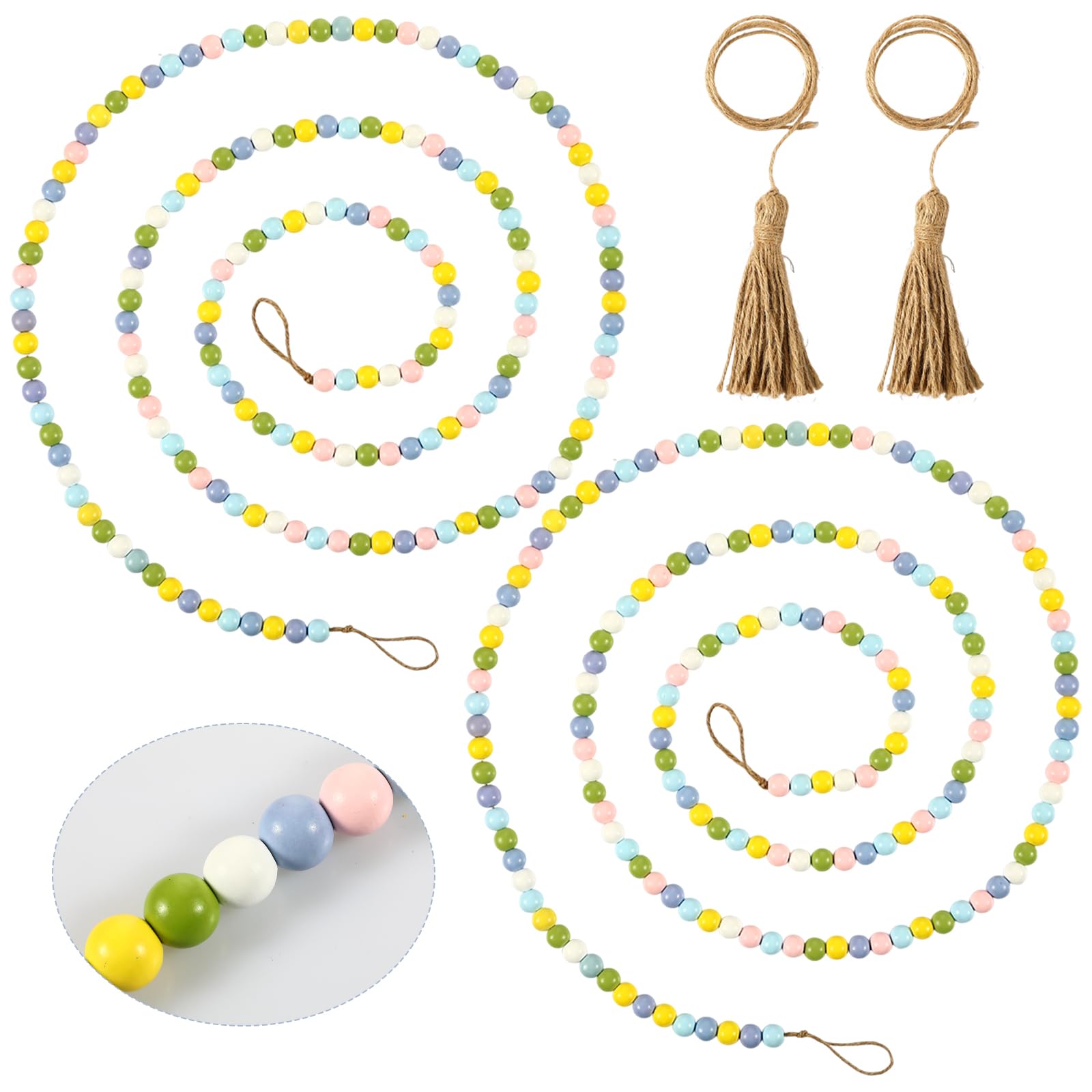 イースター 16.4フィート 木製ビーズガーランド 2個 88.19インチ ジュートロープタッセル 2.5メートル 春 カラフルな木製ビーズ 1メートル ボーホーロープ ホームティアードトレイ クリスマスツリーデコレーション
