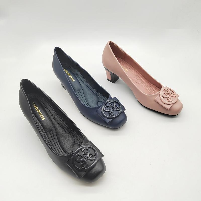 パンプス レディース 春秋 カジュアル ミドルヒール スクエアトゥ リボン 浅履き フェイクレザー チャンキーヒール バックル 無地 シンプル 普段使い オフィス 通勤 お出かけ