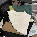 ニット メンズ 秋冬 切り替え クルーネック セーター カジュアル ストリート 手編み 配色 レトロ 学生 1824 グリーン 杏色 リブ編み