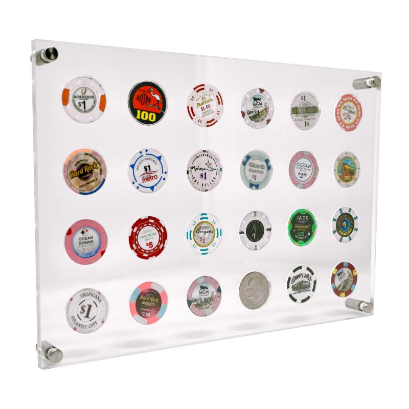 カジノチップディスプレイホルダー 24枚のチップまたはコイン用 | ポーカーチップ用壁掛けディスプレイケース - コレクターギャンブラー、ギャンブルやポーカーフレンドのためのクリアア