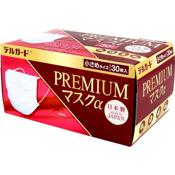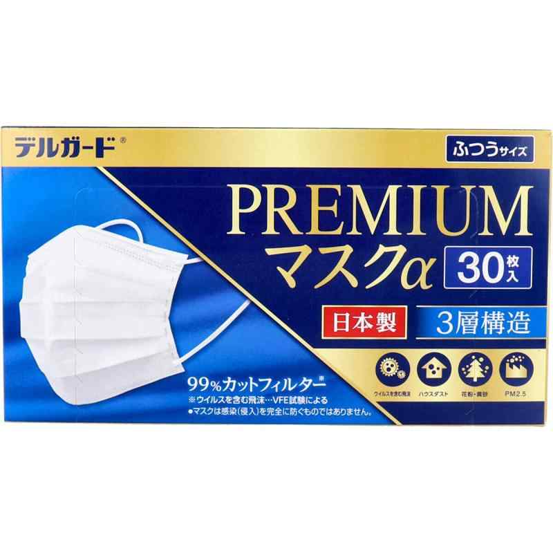 デルガード プレミアムマスクα ふつうサイズ 30枚入原材料も加工も全て日本製のマスク