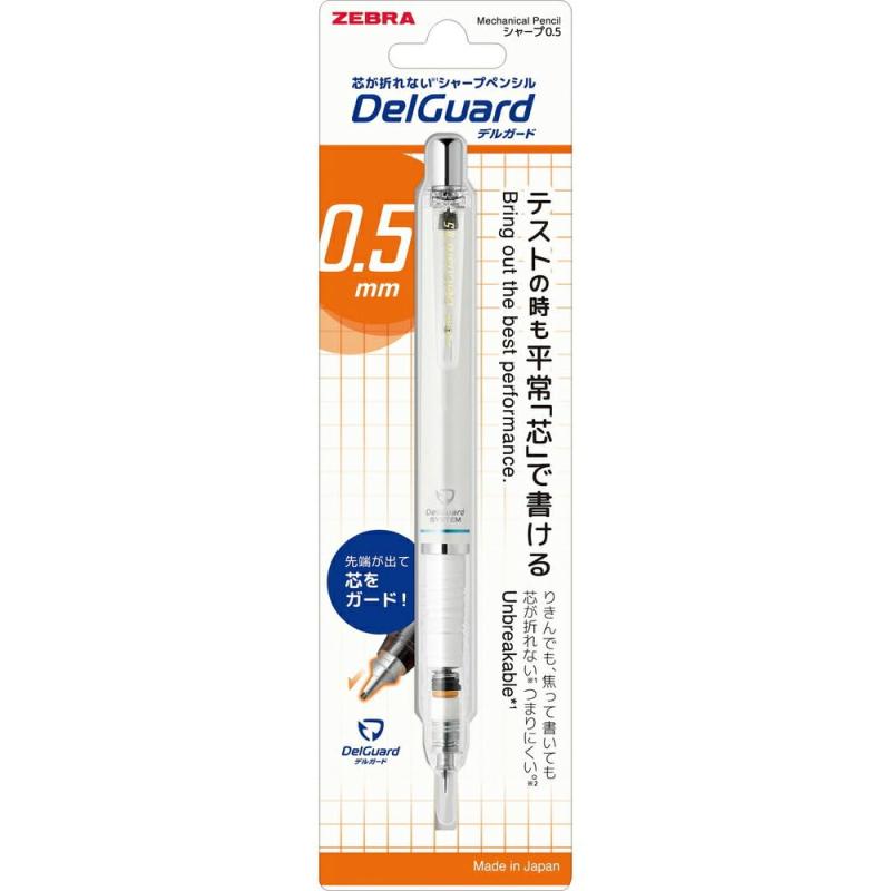 ゼブラ シャープペン デルガード 0.5mm ホワイト P-MA85-N2-W【デルガード】もう折れない。デルガードシステムは、あらゆる方向から芯を守る!【特長】芯が折れない(芯が出ていない状態から、4回以上ノックして書いた場合、折れることがあります)【芯径】0.5mm【本体サイズ】最大軸径10.3×137.3mm/重量10.g【軸素材】樹脂