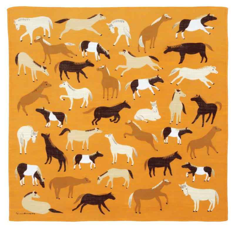 山本仁商店(YamamotoJin) 洛花 マツモトヨーコ ハンカチ ウマ 【1928】 綿100% 日本製