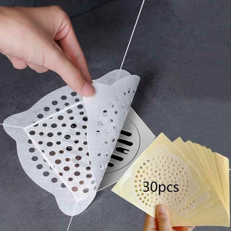 HAKONA 排水口シール 髪の毛取りシート 30枚入お風呂 排水溝 ネット 使い捨てヘアキャッチャー 風呂 排水溝 髪の毛キャッチャー 髪の毛集めてポイ 洗面台 ゴミ受け 使い捨て浴室 フィルター