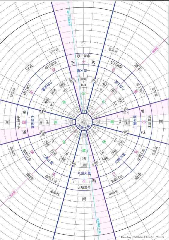 透明方位盤(A4サイズ) ver.2A4サイズ(210mm×297mm)、厚さ0.5mmの透明方位盤です十干、十二支、八卦、三合方位、鬼門方位、恵方方位、九星が記載してあります距離が計りやすいように5mmごとに破線、1cmごとに実線が入っています方位は5度ごとに印がついています下敷きとしても使えます