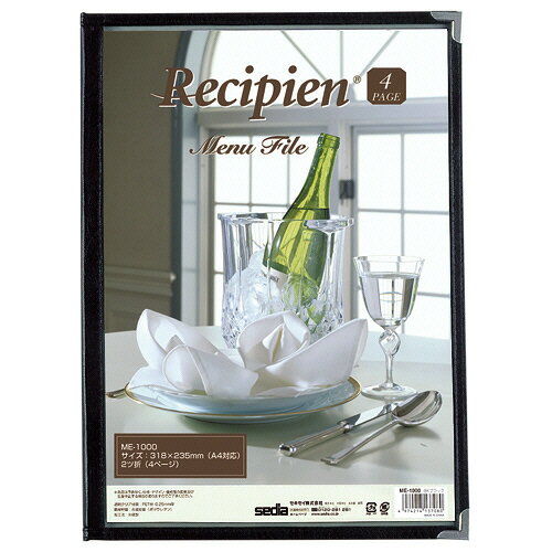 セキセイ レシピアン メニューファイル A4対応 4ページ ブラック ME-1000-60 1冊