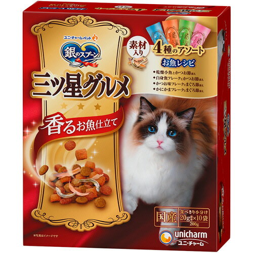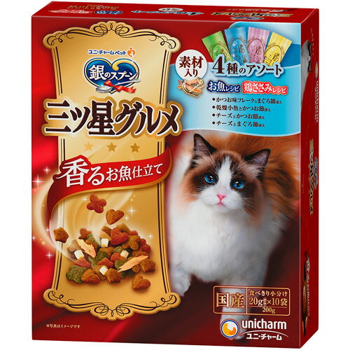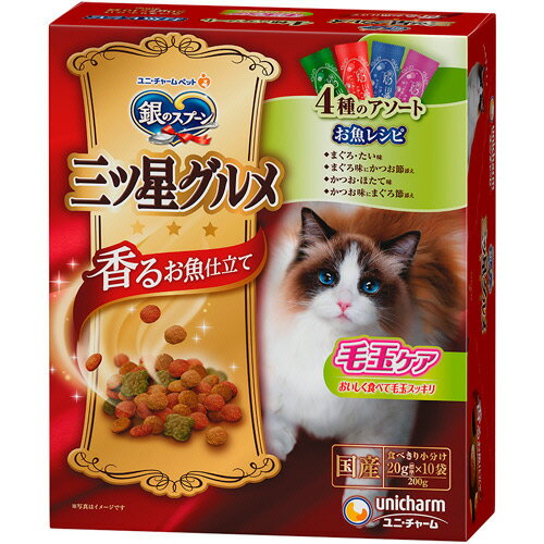 【お取寄せ品】 ユニ・チャーム 銀のスプーン 三ツ星グルメ 香るお魚仕立て 毛玉ケア お魚レシピ 4種アソート 200g(20g×10袋) 1箱