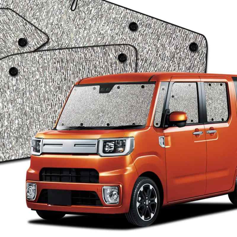 趣味職人 サンシェード シームレスサンシェード ウエイク ウェイク LA700S/LA710S系 WAKE 車用 カーテン 車中泊 カーフィルム フルセット 日本製 対応 『03s-h009-sa』1.光りを遮断 【特殊生地で光りをカットします。エアコンも快適に使え、燃費向上効果】2.防水機能 【ガラス面に付着した霜でサンシェードを濡らさないよう防水生地を採用】3.脱着が簡単 【簡易吸盤を使用しますので脱着が簡単です】4.シボ加工採用 【耐久力があり、収納時のシワが目立ちません。】装着の際は、必ずアルミ面を外側にしてください。黒を外にすると黒フィルムが溶けて、剥離します。 本製品は「お求めやすさ」をコンセプトに開発された商品となっておりますため、それに見合う品質となります。