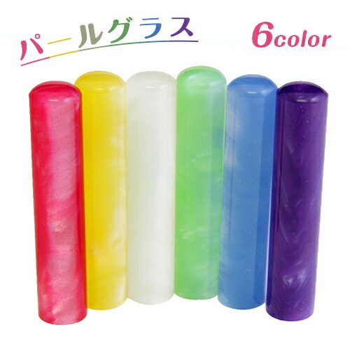 ギフト対応 【パールグラス】カラー印鑑の中でも最も歴史の長いのがこの【パールグラス】それまでのありきたりな印鑑の概念を変えた先駆者といってもいいでしょう。しかもカラー印鑑の中ではもっともリーズナブルでお求め安いのも人気の秘密です。 銀行印によく使用される直径12mm×長さ60mmの大きさです。彫刻する文字は苗字かお名前のどちらかでお願いします。結婚前の女性の方なら「名」のみで作っておくと結婚後に「姓」が変ってもそのまま使えていいですよ!カラーケースがセットになってますので、彫刻書体と合わせて上の見本からお好きな色をひとつ選んでください。 レッド ブルー グリーン イエロー ホワイト パープル 【パールグラス】カラー印鑑の中でも最も歴史の長いのがこの【パールグラス】それまでのありきたりな印鑑の概念を変えた先駆者といってもいいでしょう。しかもカラー印鑑の中ではもっともリーズナブルでお求め易いのも人気の秘密です。