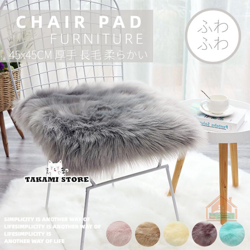 エコファーチェアパッド チェアマット 椅子/スツール/ダイニングチェアクッション 座布団 ひも付 すべり止め フェイクファー 北欧 ムー