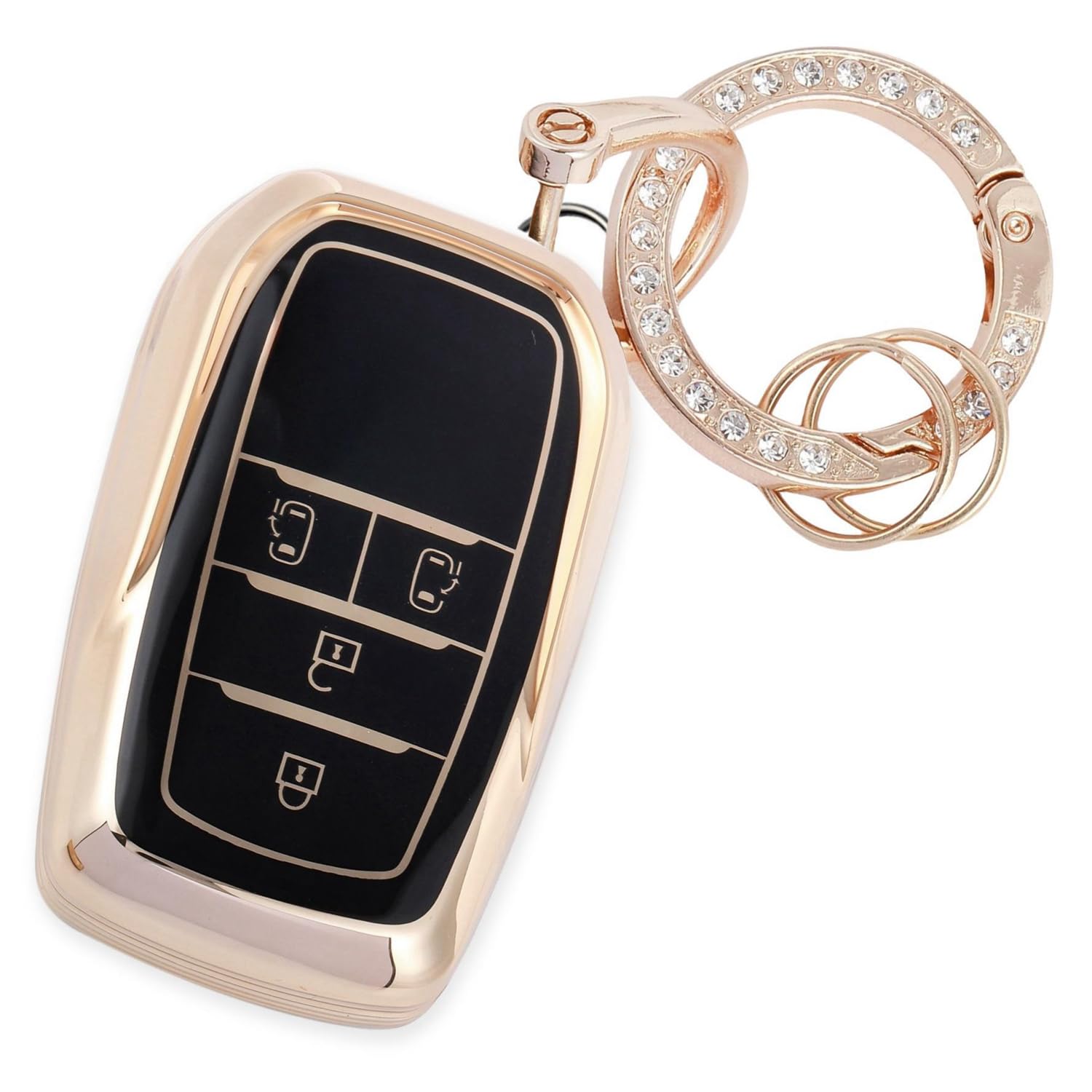 新型 ヴォクシー ノア 90 系 キーケース適合トヨタ シエンタ キーカバー NOAH VOXY キラキラ (4ボタン、ゴールドブラック)