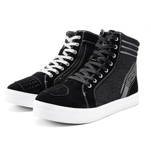 [IRON JIA'S] バイク シューズ ライディングシューズ バイクブーツ バイク用靴 ハイカット 普通履き 厚底 通気性 耐磨耗性 プロテクト 滑り止め メンズ ブラック
