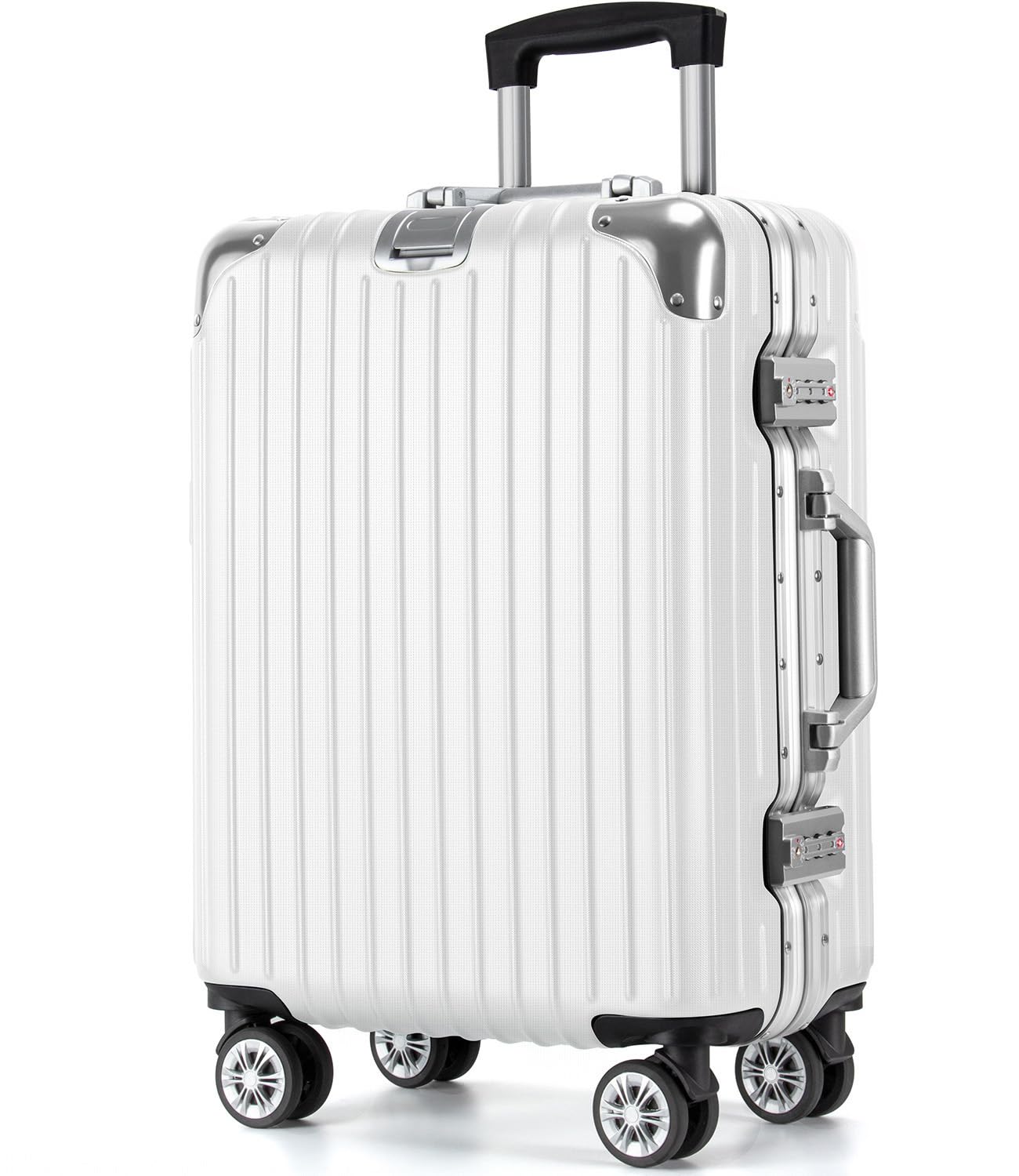 [VARNIC] スーツケース キャリーケース キャリーバッグ アルミフレーム 大型 静音 ダブルキャスター 耐衝撃 360度回転 TSAダイヤルロック 旅行 出張 (L, ホワイト)