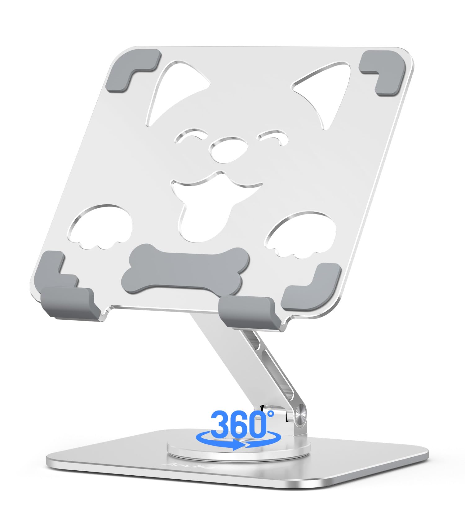 ・・【にゃんこの次はわんこ!360°回転式スタンド】犬デザインのタブレットスタンドが新登場!天面には可愛いワンちゃんの笑顔があしらわれており、仕事や勉強の合間にほっと一息つける癒しの存在です。360°回転式で、高さや角度も自由に調整可能。目線に合わせて快適な姿勢を保てるので、毎日の動画視聴やテレワークもより快適に楽しめます。・・【軽量で持ち運び便利】このタブレットスタンドはアルミ合金製で、重量はわずか345グラム。外出や移動の際も軽くて持ち運びやすい設計です。軽量でありながら高い安定性を備えているため、安心してご使用いただけます。コンパクトに折りたためるのでバッグにもすっきり収納でき、オフィスやカフェなどさまざまな場所で活躍します。・・【滑り止めでしっかりサポート】スタンドの天面と底面には滑り止め加工を施し、タブレットをがっちりホールド。デバイスの落下を防止し、安心してお使いいただけます。さらに、柴犬の耳や足跡を模した通気口が可愛らしいだけでなく、熱を効果的に逃がします。充電ケーブルを接続したままでもすっきり使えるので、動画視聴もリモートワークも快適に楽しめます。・・【幅広いシーンで活躍、ギフトにも最適】このタブレットスタンドは、学生の勉強やリモートワーク、自宅やオフィスでの使用はもちろん、カフェや飲食店のカウンター、レジ周りや受付など、さまざまな場所で活躍します。外出先の打ち合わせや出張先のホテル、電車や新幹線の中でも便利に使えます。さらに、可愛らしいデザインは誕生日や記念日、クリスマス、ペットイベントでのギフトにも最適です。実用性と癒しを兼ね備えたアイテムとして、自分用はもちろん、家族や友人への贈り物にもおすすめです。・・【幅広い機種に対応、安心保証】本スタンドは4.7インチから12.9インチまでのスマホやタブレットに対応しており、例えばiPad Pro、iPad Air、iPad mini、iPhone 17 Pro Max、16、15、14、13、12、11、iPhone Air、Galaxy S25+、S25 Ultra、Galaxy Z Flip7 FE、Z Fold7、Google Pixel 6、7、Switch、Kindleなど幅広い機種に対応可能です。本製品はご購入日から2年間の保証対象となります。万が一ご使用中に何か問題がございましたら、いつでもお気軽にご連絡ください。