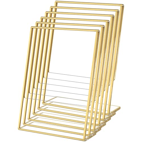 NIUBEE アクリル サインホルダー ゴールドフレーム 両面用 透明 縦置き【サイズ:A5判 6本セット】 垂直スタンド付き、結婚式のテーブル番号の表示、広告写真、カード立て、メニューディスプレイに最適 (ゴールド縁,148x210mm)