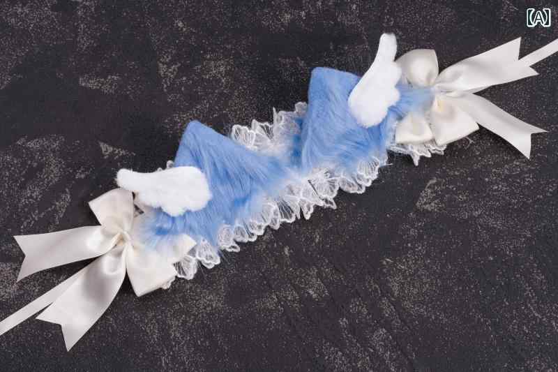 羽 猫耳 カチューシャ レース 装飾品 アクセサリー セット サブカルチャー コスプレイヤー コスチューム 衣装 ブルー 水 ホワイト ロリータ 仮装 イベント コスプレ フリル 猫 cat