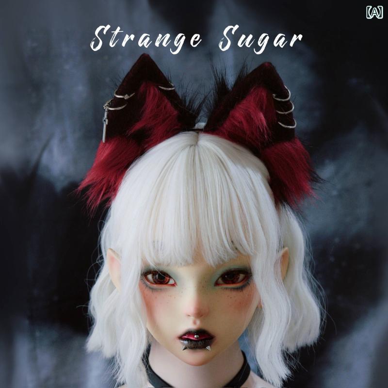 ヘアアクセサリー 黒 赤 オオカミ 犬 耳 カチューシャ 猫耳 クール サブカルチャー ダーク ブラック コスプレ コスチューム 動物 衣装 リアル 毛並み ピンク レッド シルバー チェーン ピアス