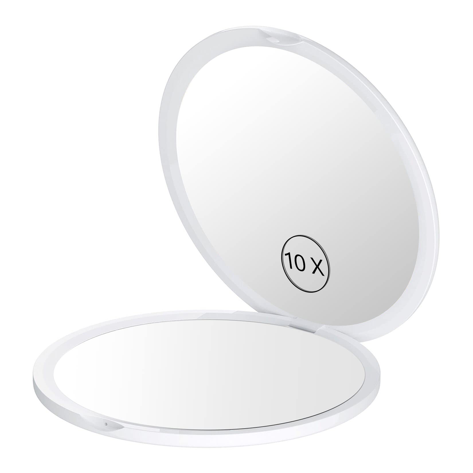 Gospire コンパクトミラー 10倍拡大鏡 拡大両面化粧鏡 コンパクト メイクミラー 携帯 両面鏡 折りたたみ シンプルなデザイン 角度調整可 超軽量 ホワイト