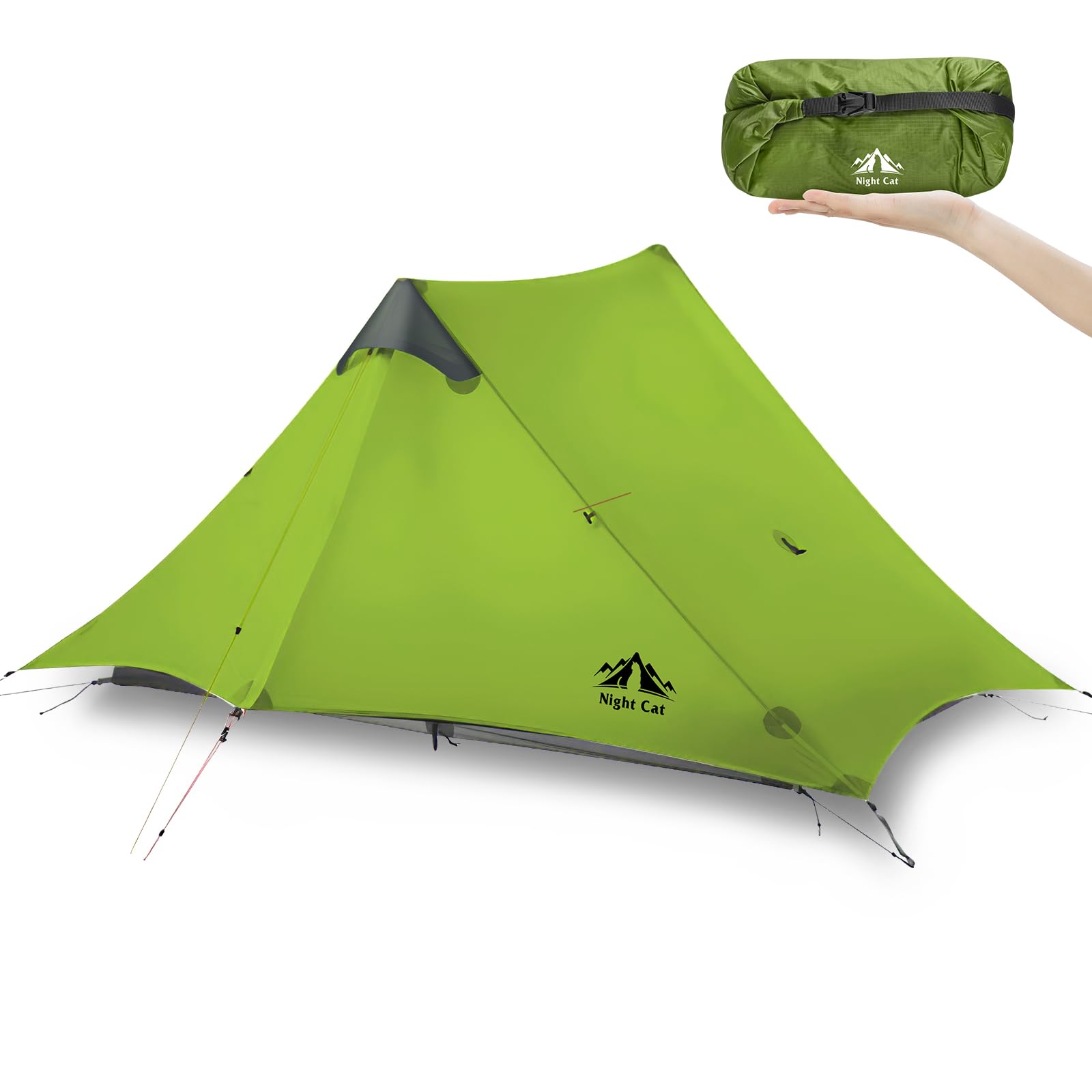 Night Cat ウルトラライトテント2人用プロフェッショナルバックパッカーハイカー3 LBS専用ランシャンバックパッキングビビーグランドテント大雨防水トレッキングポールは含まれていません ダークグリーン
