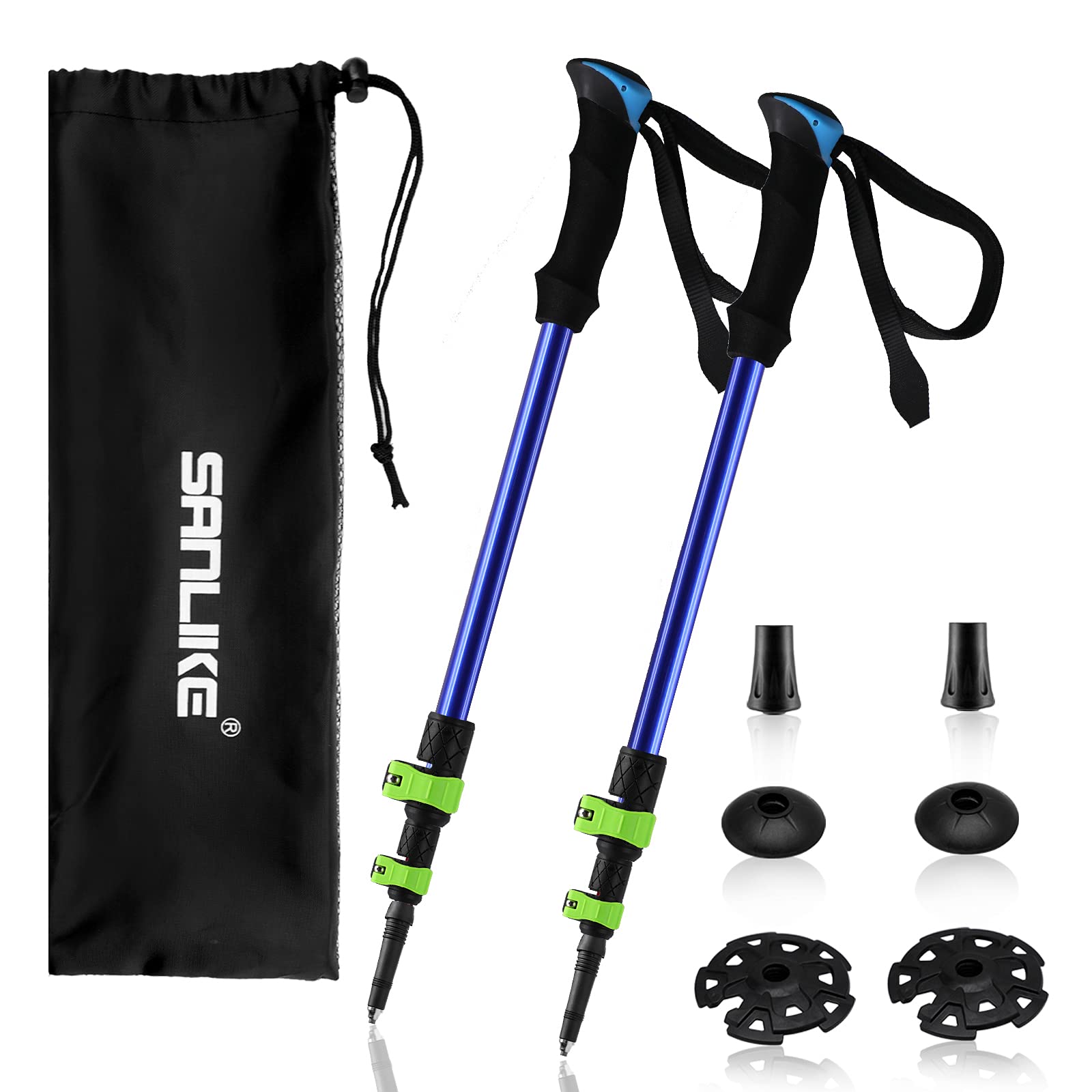 サンライク(SANLIKE)トレッキングポール カーボン 登山 ストック トレッキングステッキ 折りたたみ 登山杖 三段式伸縮 超軽量 EVAグリップ コンパクト 山登り 2本セット (Lサイズ61-130cm) (ブルー)