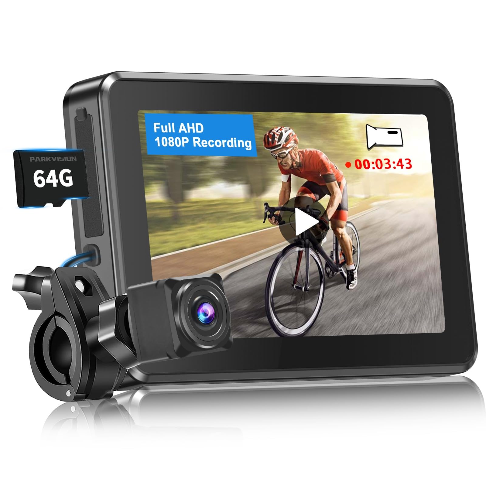 PARKVISION 自転車ミラー 自転車ドライブレコーダー 録画機能付き自転車バックミラー 1080P超精細画質 110度水平画角 64GBカード付き 360°回転可能 ハンドル自転車バックカメラと4.3インチモニター 18~42mmハンドル対応可能 電