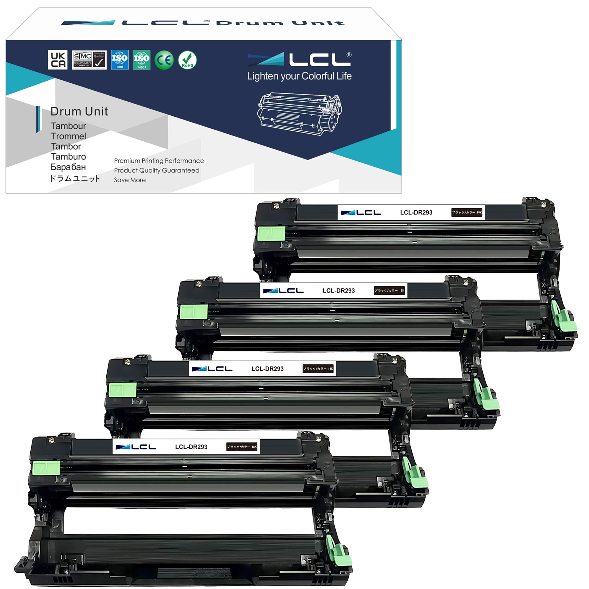 ・【購入注意】本製品のブラックとカラーが共通です。正常に使えるために、以下の商品の説明をご確認の上、ご購入ください。 * これはドラムユニットだけで、トナーカートリッジを含みません。・【対応機種】 Brother MFC-L3770CDW HL-L3230CDW・【印刷可能枚数】 1本 約 18000 枚 (A4 印字率 5%)・【耐久性OPC】LCL DR-293CL ドラムユニットは耐久性OPCを採用しており、耐久性が非常に高く、より大きな圧力に耐えることができ、優れた耐老化性があり、より高い動作温度に耐えることができるため、ドラムユニットの使用寿命を確保します。・【国際認定】高品質の原材料が印刷効果を確保し、厳格な管理が安定した品質を確保します。国際規格であるISO14001、ISO9001とSTMC、CE、ROHS認定工場で製造されるLCL高品質消耗品を安心してお使いいただけます。・【個別包装】備品として購入して保管する便利さを考えて、すべての製品を1本ずつ独立した箱に入れます。硬質の箱も使用して、ご注文の商品が安全に届けますことを最大限に確保します。・【厳格なテスト】すべての製品は3段階でテストされてこそ、工場から出荷される資格があります。第1段階は原材料の信頼性テスト、第2段階は完成品の色の忠実度テスト、第3段階は厳格な二重テスト: 製造段階での印刷テストと出荷前の最終テストです。