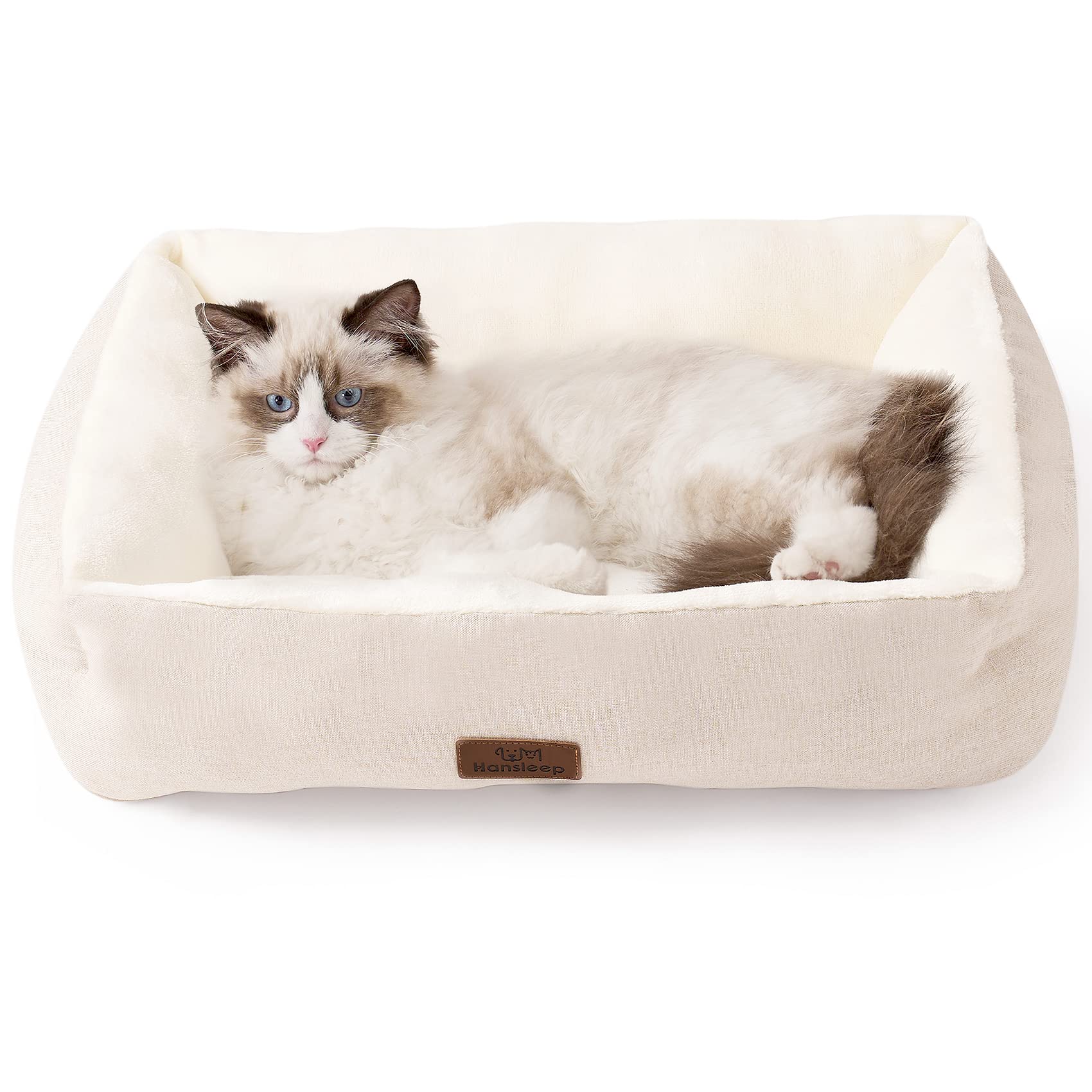 Hansleep 猫 ベッド 犬 ベッド 夏 ペットベッド ふわふわ クッション 両面用 S 通年 小型犬用 リバーシブル ぐっすり眠る キャット 猫用 ペット用品 (50L x 40W x 12H cm, ベージュ)