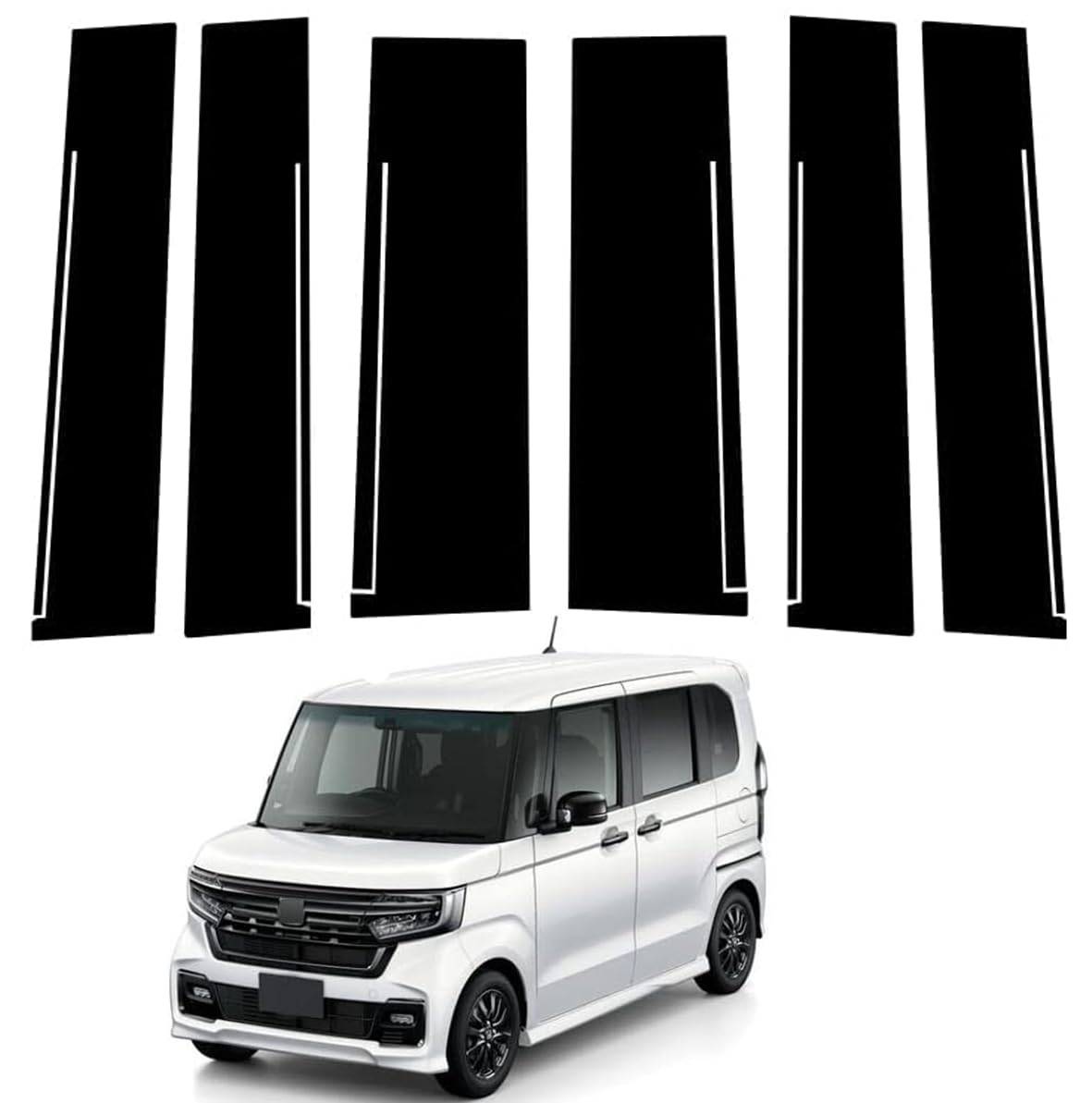 ホンダ N-BOX JF3 JF4 ピラーガーニッシュ 純正バイザー ステッカーガーニッシュ保護カバー 6点セット ピアノブラック