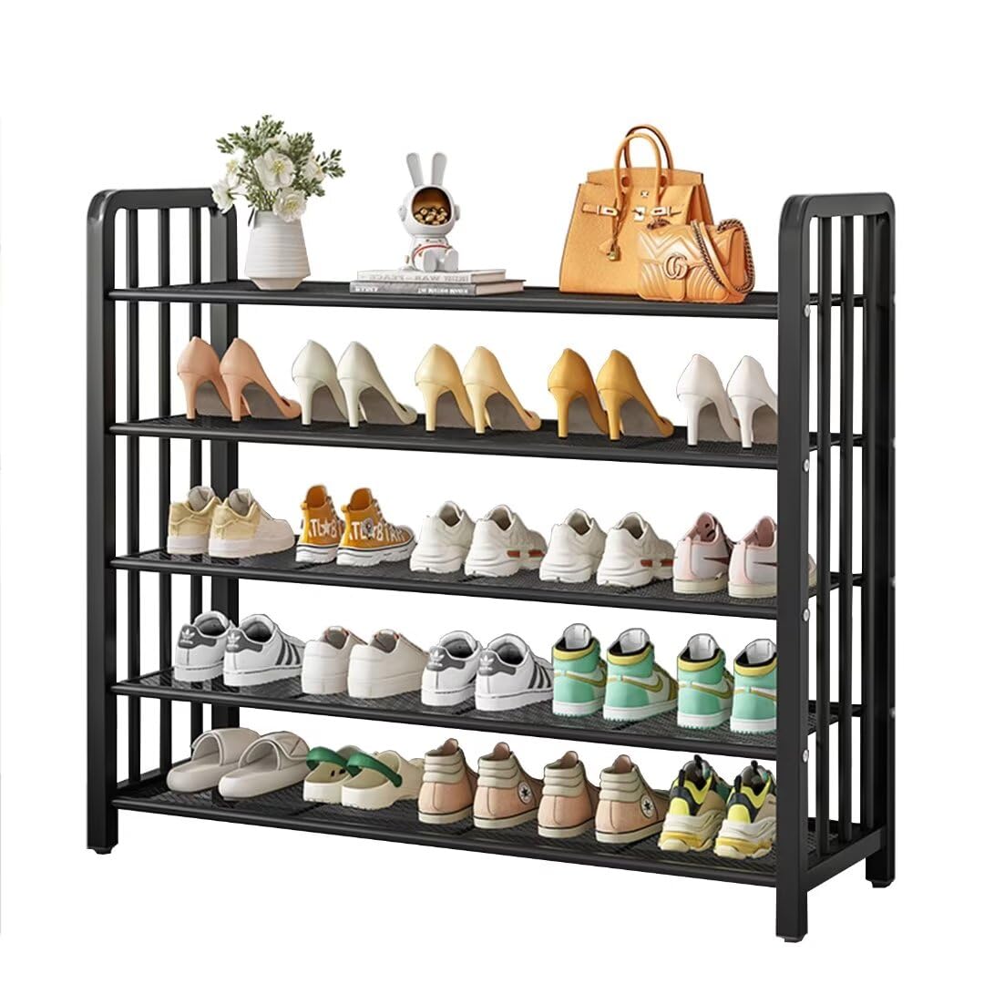 Fainyearn シューズラック 5段 天板付き 玄関収納 靴箱 スリムシューズボックス 省スペース インテリア収納 下駄箱 薄型 隙間収納 収納棚 (ブラック, 5段)