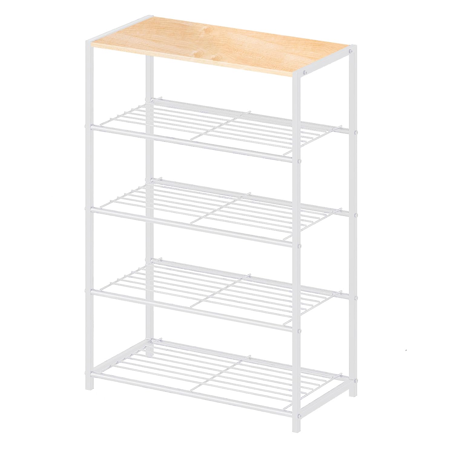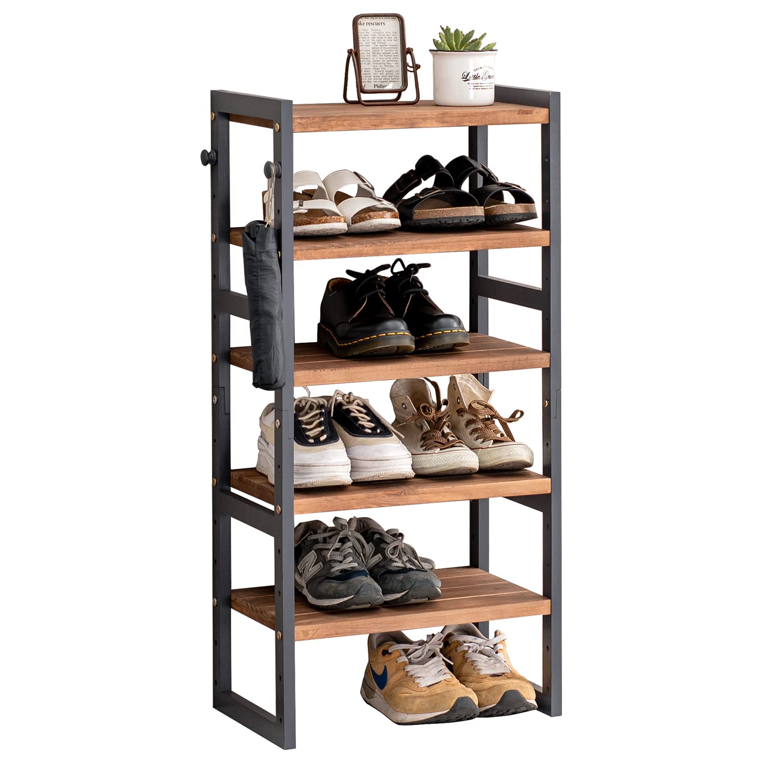 シューズラック 5段 メッシュ棚調整可能 靴棚 下駄箱 省スペース オープンラック 16足用 大容量 通気 木製天板 サイドテーブル 靴収納