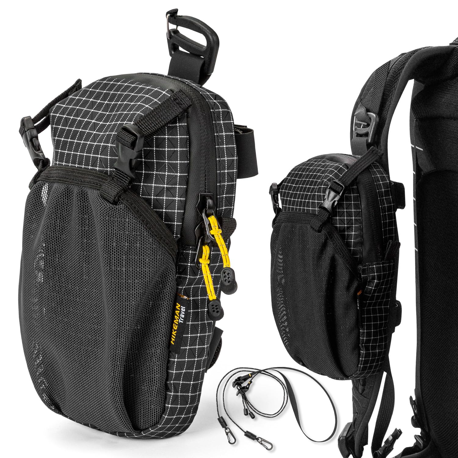 ・「出し入れやすい機能性ポーチ」:ショルダーポーチとして使ったり、ショルダーを外して登山ザックに取り付けて使用もできる機能性ポーチです。スマホや財布などリュックを下ろさず常備の小物がサッと取れてとても便利です。・「素晴らしい収納力」:中には仕切り用のメッシュポケットもあり、外側はメッシュポケット一つ。6.5インチまでの大画面スマホとバッテリー同時収納できます。日常の小物入れとしても鍵、イヤホンなどの常備品も整理整頓で持ち歩けます。・「超軽量&頑丈」:重さは僅か93gぐらいで負担のないショルダーポーチです。ポーチの表地は引き裂けに強いダイニ—マを使用、中も頑丈なナイロン製で不注意で鋭いものと擦れてもしっかりと中身を守ってくれます。・「ショルダーの長さ調整可能」:ポーチショルダーの長さは77・145cm調整できるため、小柄、一般身長のお方は勿論、高身長のお方にもスタイル良く使って頂けます。・「細部までの拘り」:ポーチにはゴムが一つ縫い付けられていてサイクリングする時、ペットボルトなどを固定したい時に役立ちます。ファスナーも防水仕様で、ちょっとした小雨なら平気です。二重のマジックテープでリュックのハーネスに付ける時は落ちることありません。説明 リュックにつけるポーチとして、ショルダーバッグとしてなど使い方が多彩なメンズショルダーバッグです。