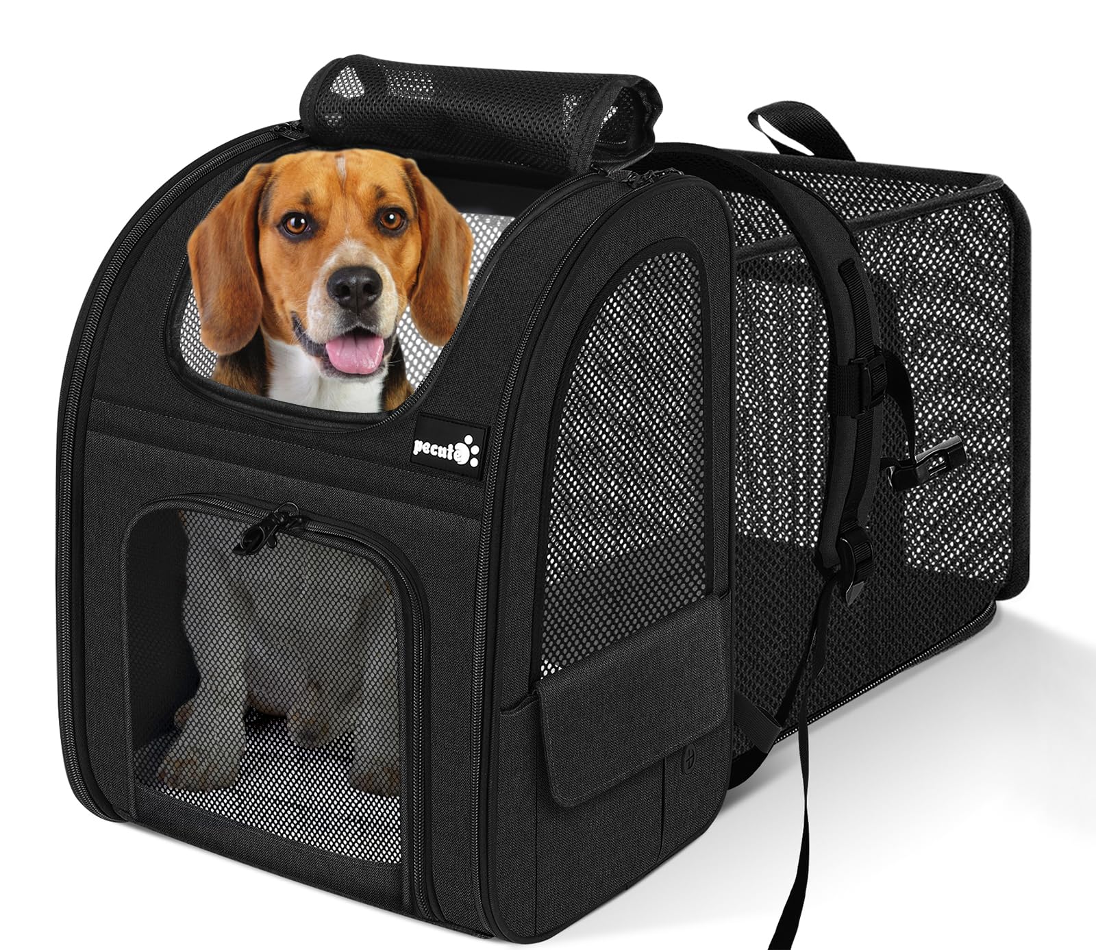 Pecute ペット キャリーバッグ 猫用 犬用 リュック メッシュ窓 通気性 拡張可能 2WAY ペットハウス ケージ 折り畳み お出かけ ドライブ 旅行 通院 防災 避難用 キャリー ブラック XL