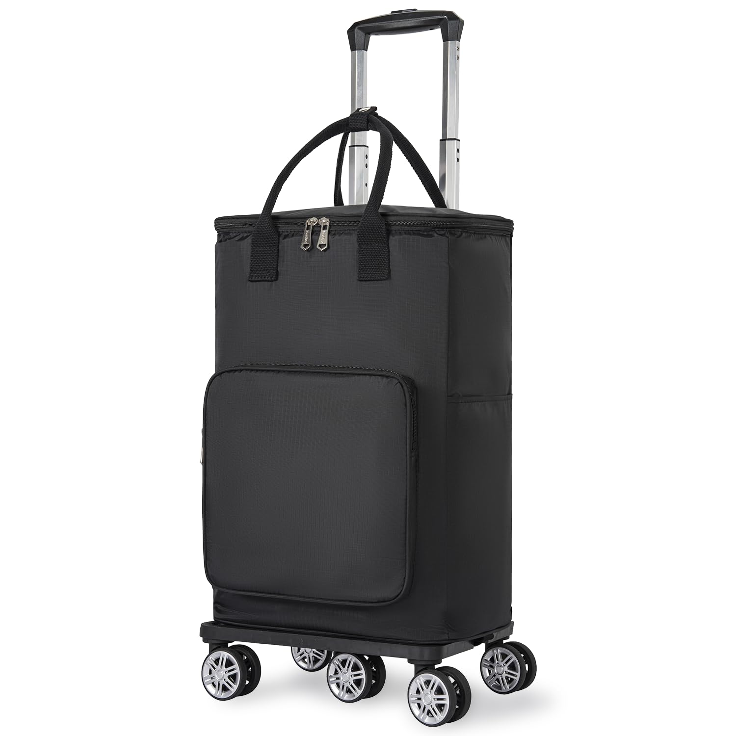BQKOZFIN 5輪 ショッピングキャリー 横押し ショッピングカート 約36L 保温保冷 軽量 リュック カート 2WAY ブラック