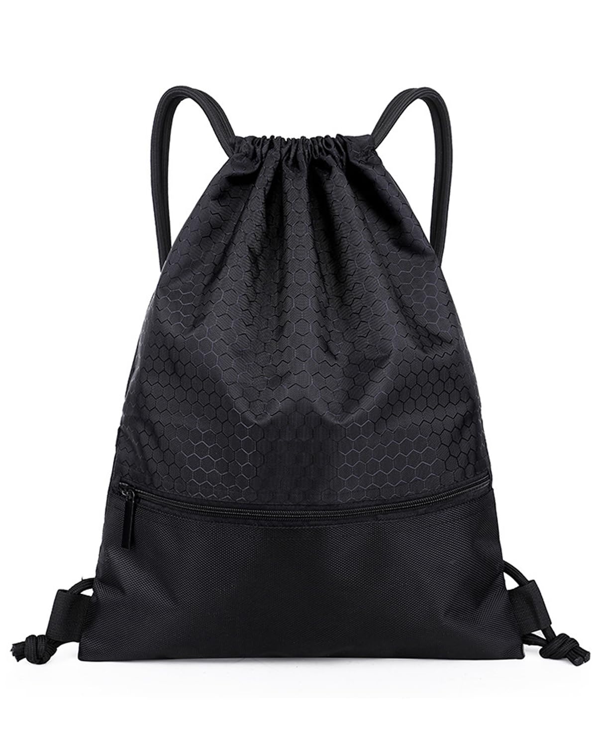 [LIKENNY] ジムサック リュック ナップサック プールバッグ 防水 軽量 折り畳み 多機能 シューズ収納 バッグ バッグ エコ 運動 旅行 アウトドア スポーツバッグ(ブラック-B)